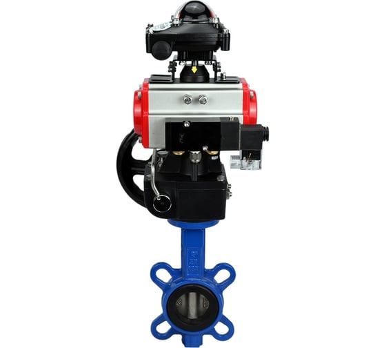 Затвор DN.ru GG25-316L-NBR Ду100 Ру16 с пневмоприводом, пневмораспределителем, БКВ, дублером D050-10809