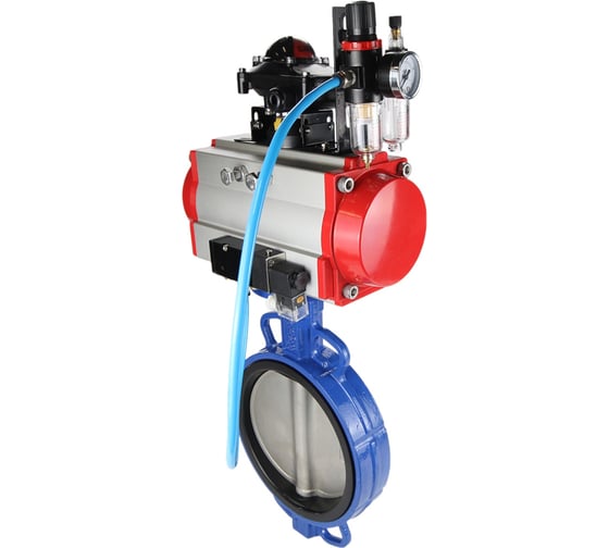 Затвор DN.ru GG25-316L-NBR Ду125 Ру16 с пневмоприводом, пневмораспределителем, БПВ, БКВ D050-11064