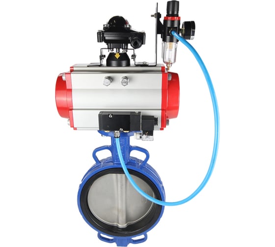 Затвор DN.ru GG25-316L-NBR Ду125 Ру16 с пневмоприводом, пневмораспределителем, БПВ, БКВ D050-11074