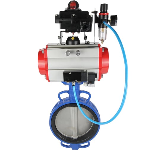 Затвор DN.ru GG25-316L-NBR Ду125 Ру16 с пневмоприводом, пневмораспределителем, БПВ, БКВ D050-14650
