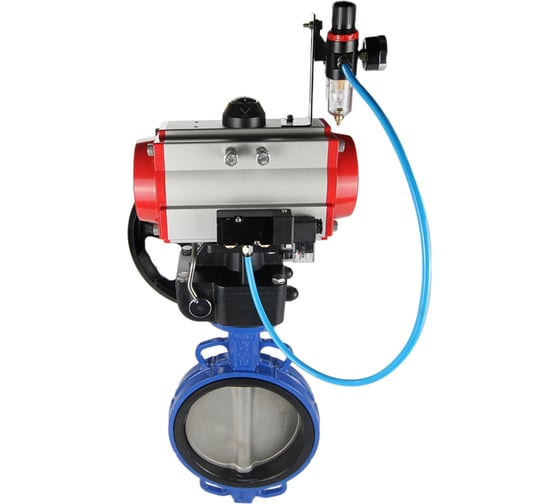 Затвор DN.ru GG25-316L-NBR Ду125 Ру16 с пневмоприводом, пневмораспределителем, БПВ, дублером D050-11140