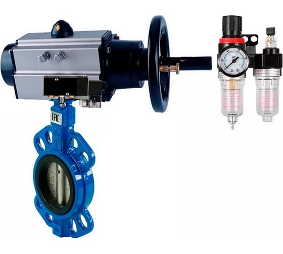 Затвор дисковый поворотный DN.ru GG25-316L-NBR с пневмоприводом DA-105-1, пневмораспределителем PND1-S2EM-52-2-T08-220VAC, блоком подготовки воздуха APU1-10-40-V08.