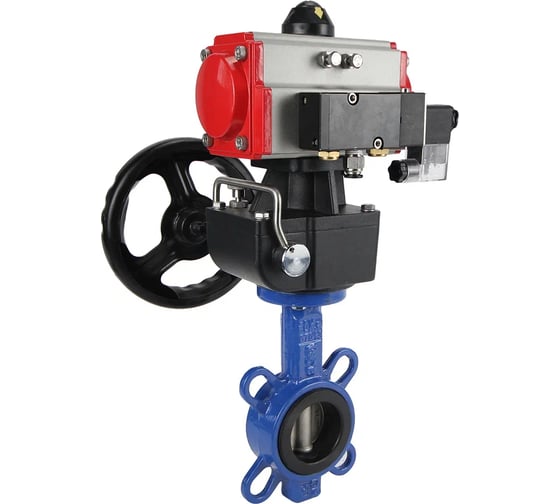 Затвор DN.ru GG25-316L-NBR Ду125 Ру16 с пневмоприводом, пневмораспределителем, дублером D050-20200