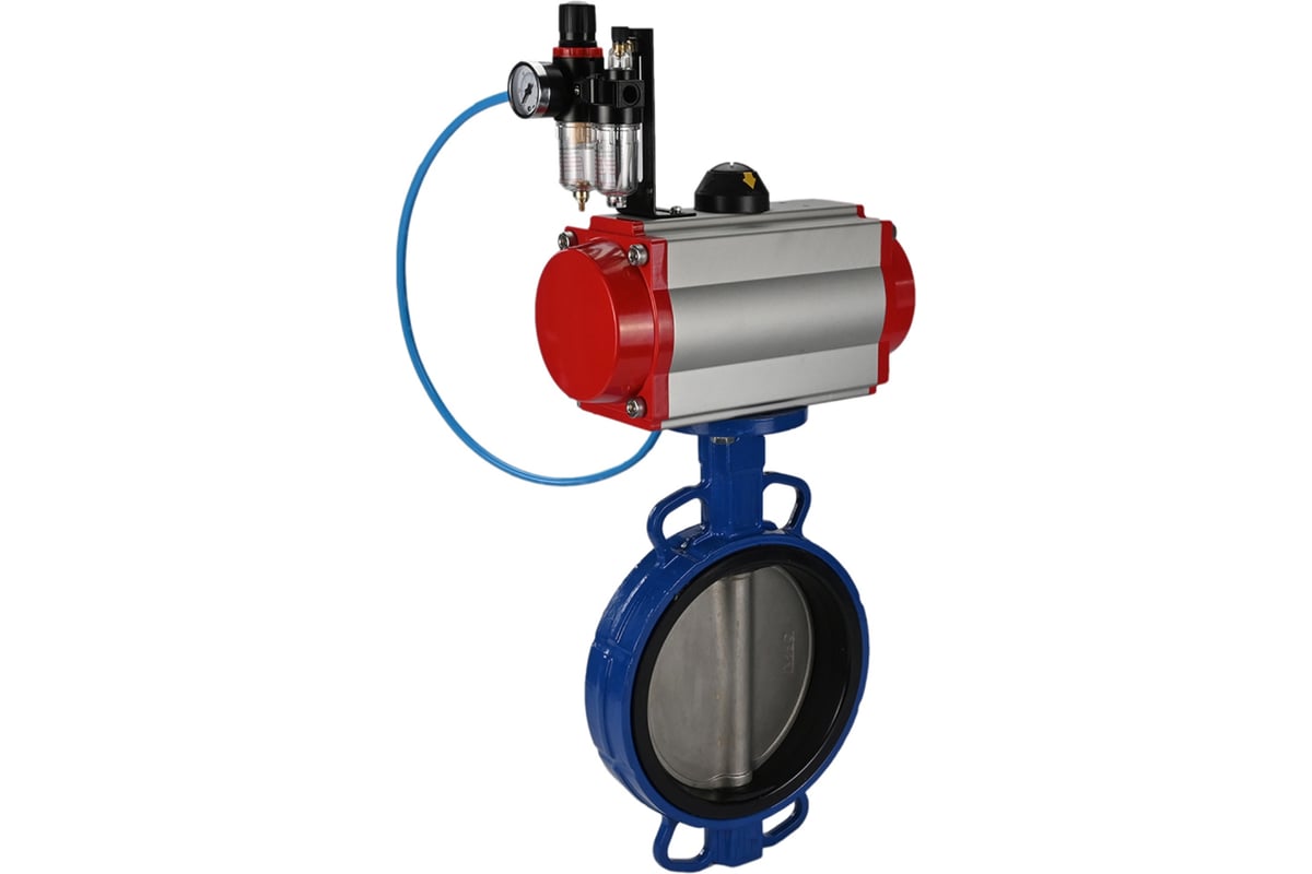 Затвор дисковый поворотный DN.ru GG25-316L-NBR с пневмоприводом DA-160, пневмораспределителем PND2-S1EM-52-1NC-J08-220VAC, блоком подготовки воздуха APU1-10-40-V08.