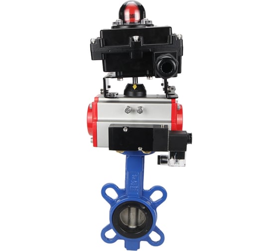 Затвор дисковый поворотный DN.ru GG25-316L-NBR с пневмоприводом DA-065, пневмораспределителем PND2-S1EM-52-1NC-J08-24VDC, блоком концевых выключателей LSB-410-02ExM12-250.