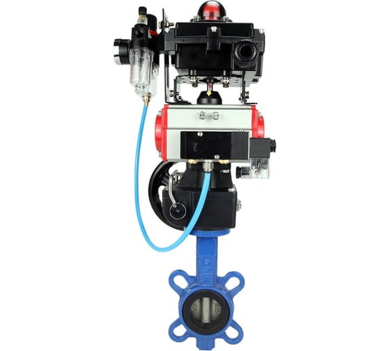 Затвор DN.ru GG25-316L-NBR Ду65 Ру16 с пневмоприводом, пневмораспределителем, БПВ, БКВ, дублером D050-14677