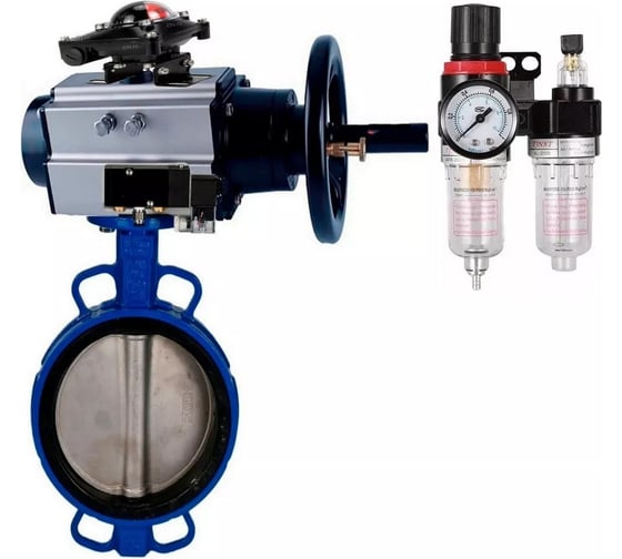 Затвор DN.ru GGG50-316L-EPDM Ду150 Ру16 с пневмоприводом, пневмораспределителем, БПВ, БКВ D050-22018