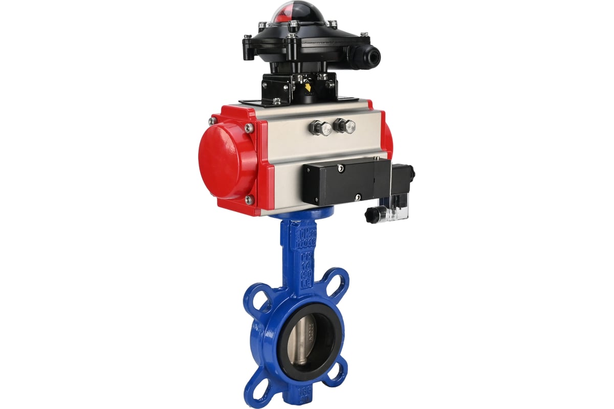 Затвор дисковый поворотный DN.ru GGG50-316L-EPDM с пневмоприводом DA-140, пневмораспределителем PND2-S1EM-52-1NC-J08-24VDC, блоком концевых выключателей LSB-210-02NM12-220/24.