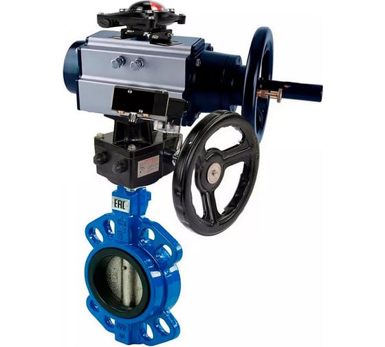 Затвор дисковый поворотный DN.ru GGG50-316L-NBR с пневмоприводом DA-105-1, пневмораспределителем PND1-S2EM-52-2-T08-220VAC, БКВ LSB-410-02ExM12-250, ручным дублером HDM-3.