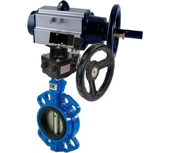 Затвор дисковый DN.ru GGG50-316L-NBR Ду125, Ру16, ручной дублёр, пневмораспределитель D050-22214