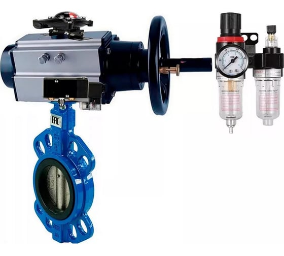 Затвор DN.ru GGG50-316L-NBR Ду150 Ру16 с пневмоприводом, пневмораспределителем, БПВ, БКВ D050-22211
