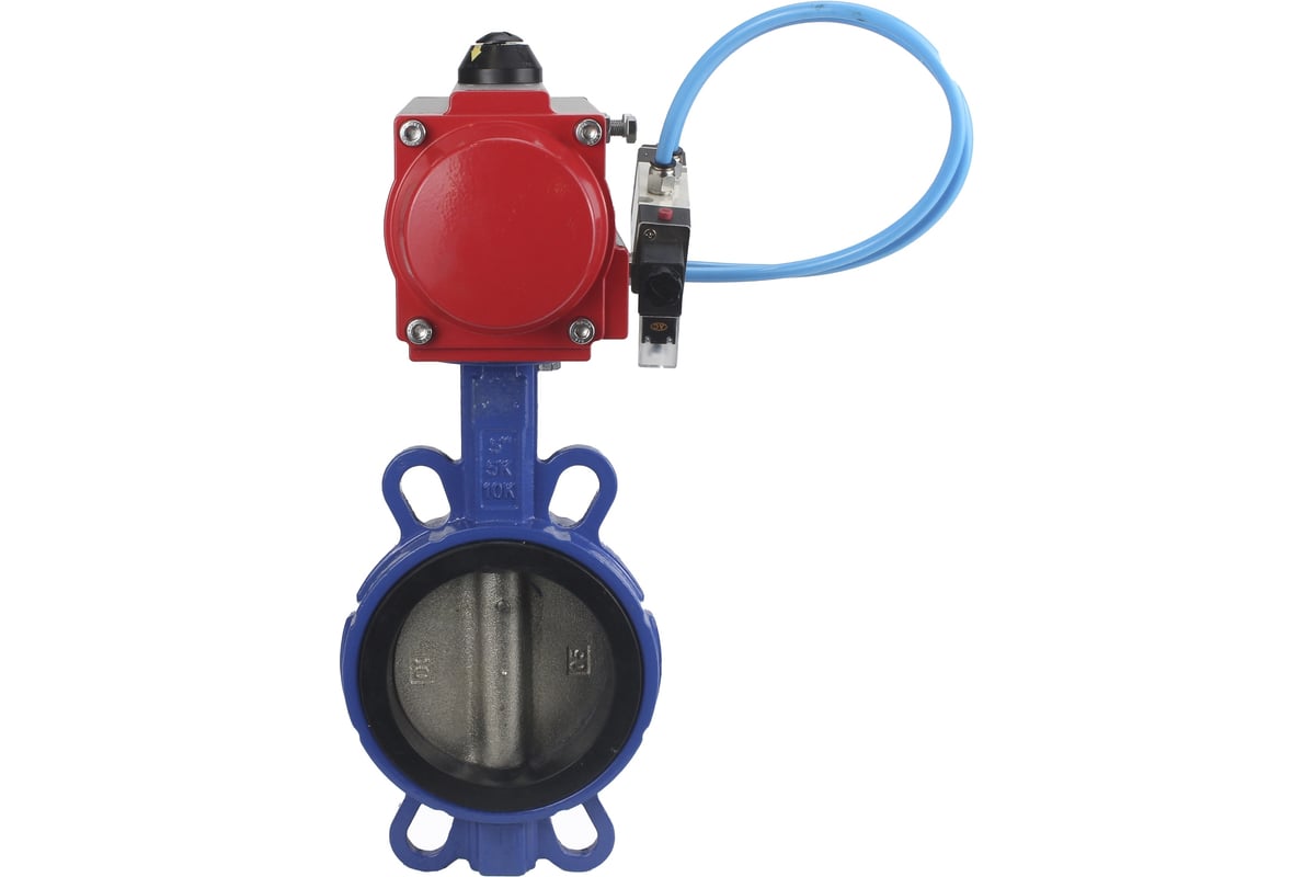 Затвор дисковый поворотный DN.ru GGG50-GGG40-EPDM с пневмоприводом SA-130, пневмораспределителем PND1-S2EM-52-2-T08-220VAC предназначен для использования в качестве запорной или регулирующей арматуры для управления потоками в системах теплоснабжения, водоснабжения, в технологических процессах различных отраслей промышленности.