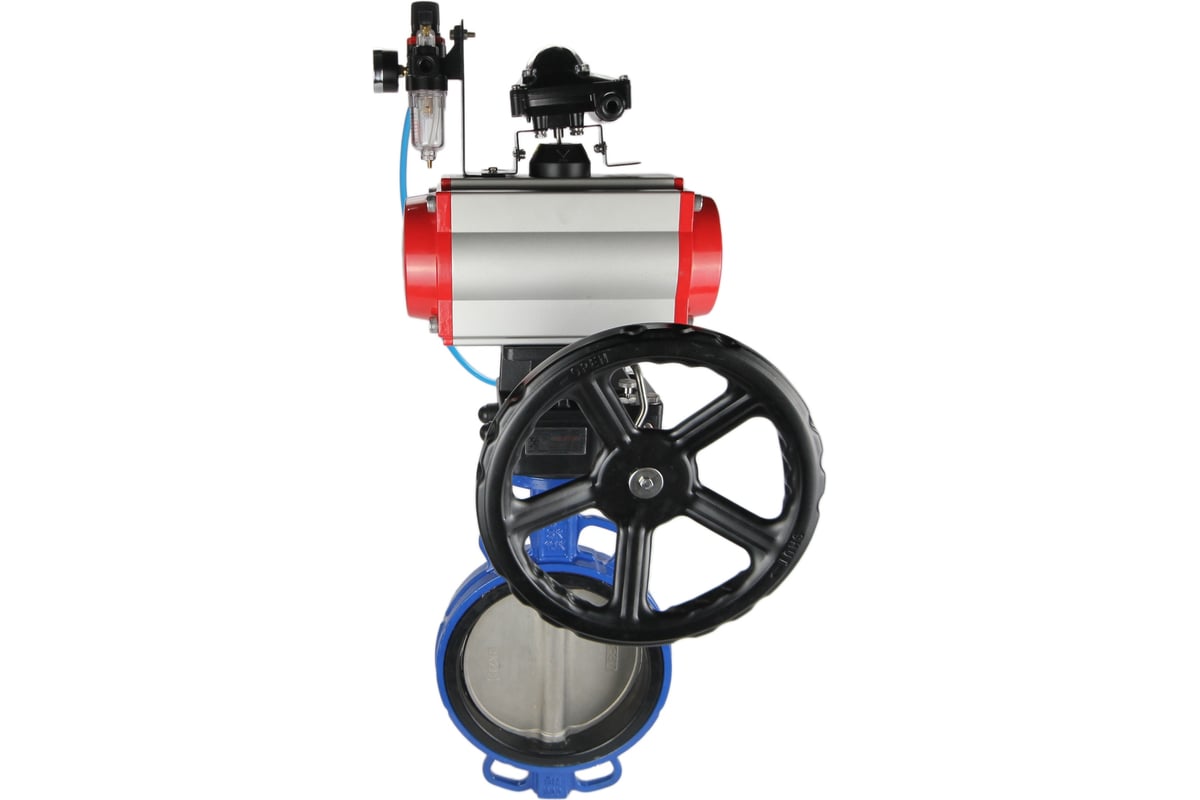 Затвор дисковый DN.ru GGG50-GGG40-EPDM с пн.приводом DA-130, пн.распределителем PND2-S1EM-52-1NC-J08-24VDC, БПВ APU1-10-40-V08, БКВ LSB-210-02NM12-220/24, ручным дублером HDM-3.