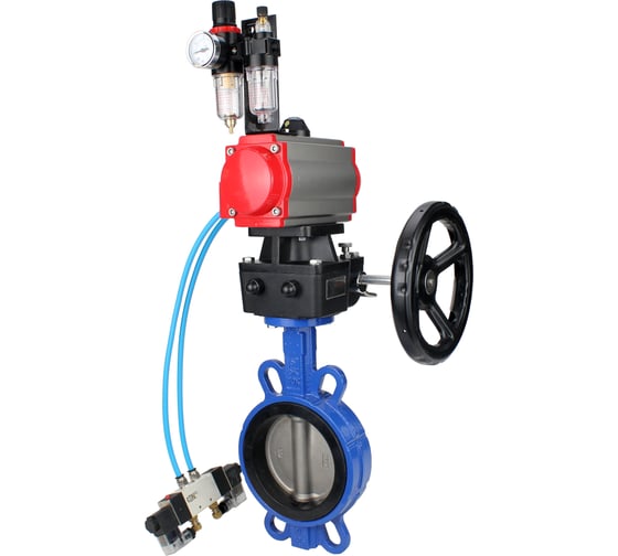 Затвор дисковый DN.ru GGG50-GGG40-EPDM с пневмоприводом DA-140, пневмораспределителем PND1-S2EM-52-2-T08-220VAC, БПВ APU1-10-40-V08, ручным дублером HDM-4.