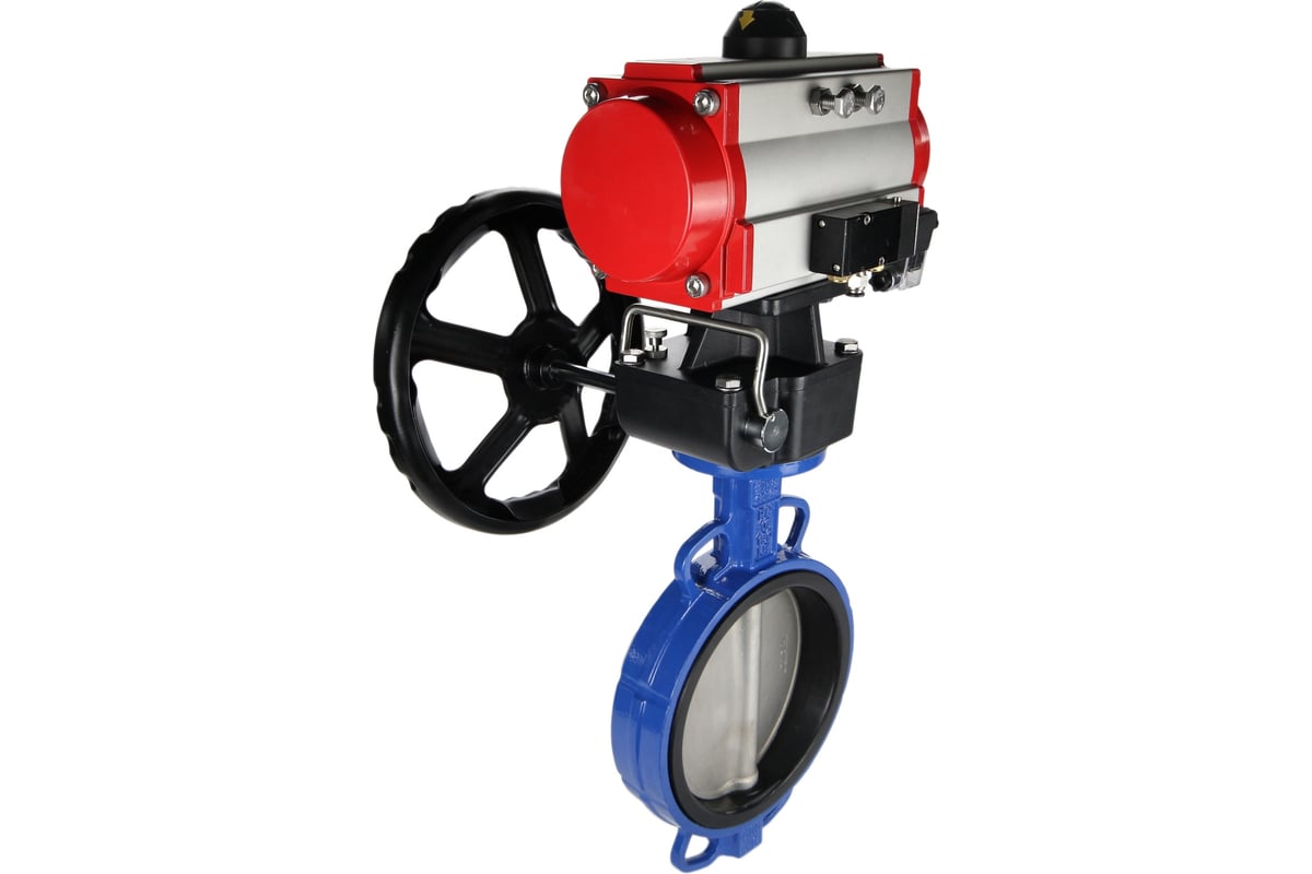 Затвор дисковый поворотный DN.ru GGG50-GGG40-EPDM с пневмоприводом DA-140, пневмораспределителем PND2-S1EM-52-1NC-J08-220VAC, ручным дублером HDM-4.