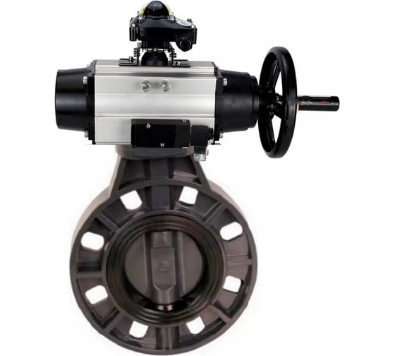 Затвор дисковый DN.ru НПВХ-НПВХ-E-2W-Fb-ISO Дн100 Ру10, пневмопривод, пневмораспр., БКВ D050-83025
