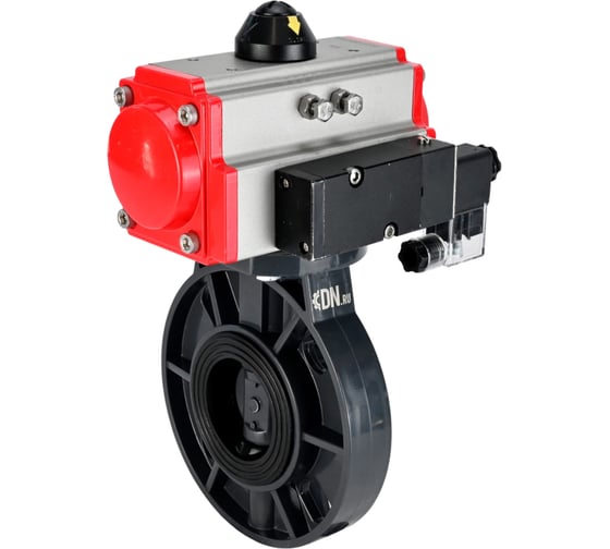 Затвор дисковый DN.ru НПВХ-НПВХ-E-2W-Fb-ISO Дн150 Ру10, пневмопривод, пневмораспр. D050-83755