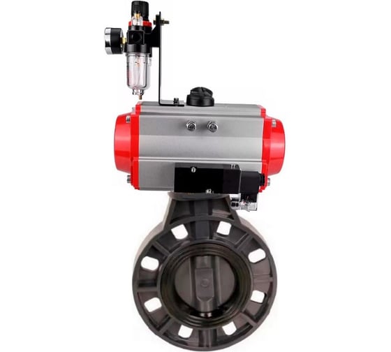 Затвор дисковый DN.ru НПВХ-НПВХ-E-2W-Fb-ISO Дн200 Ру10, пневмопривод, пневмораспр., БПВ D050-83490