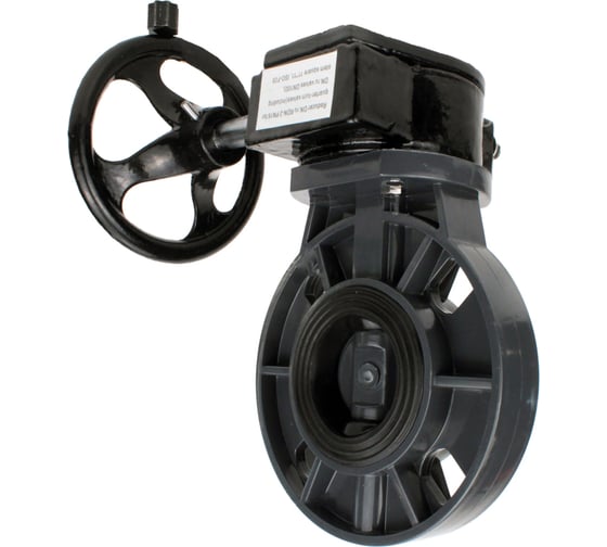 Затвор дисковый DN.ru НПВХ-НПВХ-E-2W-Fb-ISO Дн50 Ру10 межфланцевый, редуктор RDN-1 D050-82891