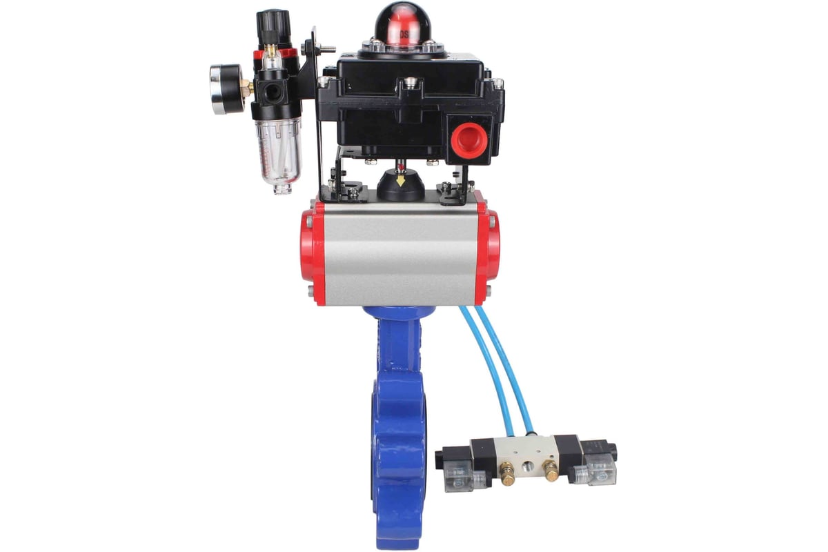 Затвор дисковый поворотный DN.ru QT450-304-EPDM-2W-Fb-H с пневмоприводом DA-065, пневмораспределителем PND1-S2EM-52-2-T10-220VAC, блоком подготовки воздуха APU1-10-40-V08, блоком концевых выключателей LSB-410-02ExM12-250.
