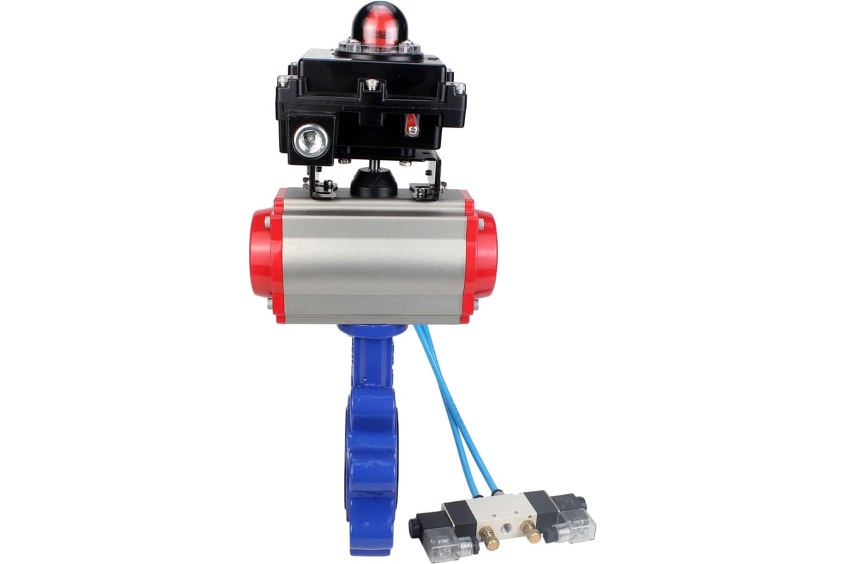 Затвор дисковый поворотный DN.ru QT450-QT450-NBR-2W-Fb-H с пневмоприводом SA-130, пневмораспределителем PND1-S2EM-52-2-T10-220VAC, блоком концевых выключателей LSB-410-02ExM12-250.