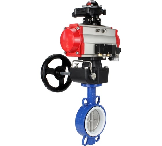 Затвор DN.ru WCB-316L-PTFE Ду80 Ру16 с пневмоприводом, пневмораспределителем, БКВ, дублером D050-13955