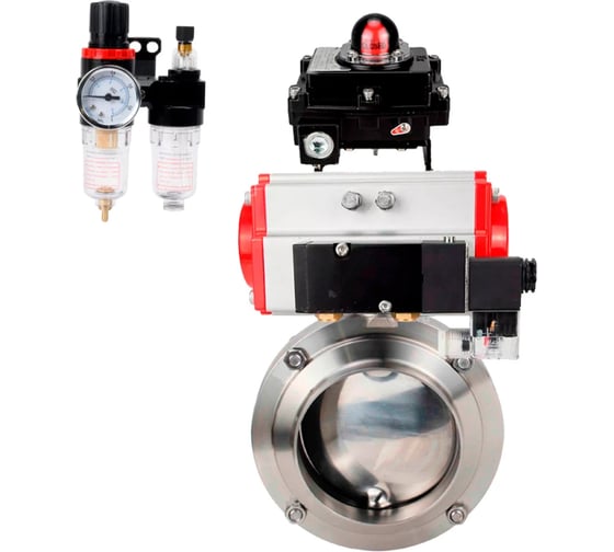 Затвор дисковый поворотный предназначен для использования в качестве запорной или регулирующей арматуры для управления потоками в системах теплоснабжения, водоснабжения, в технологических процессах пищевой, химической, нефтегазовой, целлюлозно-бумажной и других отраслях промышленности. Принцип работы: Затворы открываются и закрываются путем поворота диска на 90°. Приводы пневматические DN.ru поворотные двойного действия DA-XXX и приводы пневматические поворотные с возвратной пружиной SA-XXX предназначены для автоматизации процесса управления промышленной арматурой при максимальном значении крутящего момента до 2128 Нм. Пневмораспределители используются для управления в пневмосистемах, имеющих стыковочную поверхность NAMUR, для установки распределителей через сквозные отверстия в корпусе. Электромагнитное управление, осуществляется при помощи катушек напряжения 12-AC, 12-DC, 24-AC, 24-DC, 110-AC, 220-AC. Блок концевых выключателей – это электротехническое устройство, предназначенное для размыкания и замыкания рабочей цепи и для визуализации положений запорного органа трубопроводной арматуры. Блок подготовки воздуха предназначен для очистки сжатого воздуха от капельной влаги и твердых частиц, удаления конденсата, автоматического поддержания величины давления на заданном уровне, подвода смазочного материала из резервуара в поток сжатого воздуха к элементам пневмосистемы. Товар может отличаться от фото, при выборе ориентируйтесь на характеристики.
