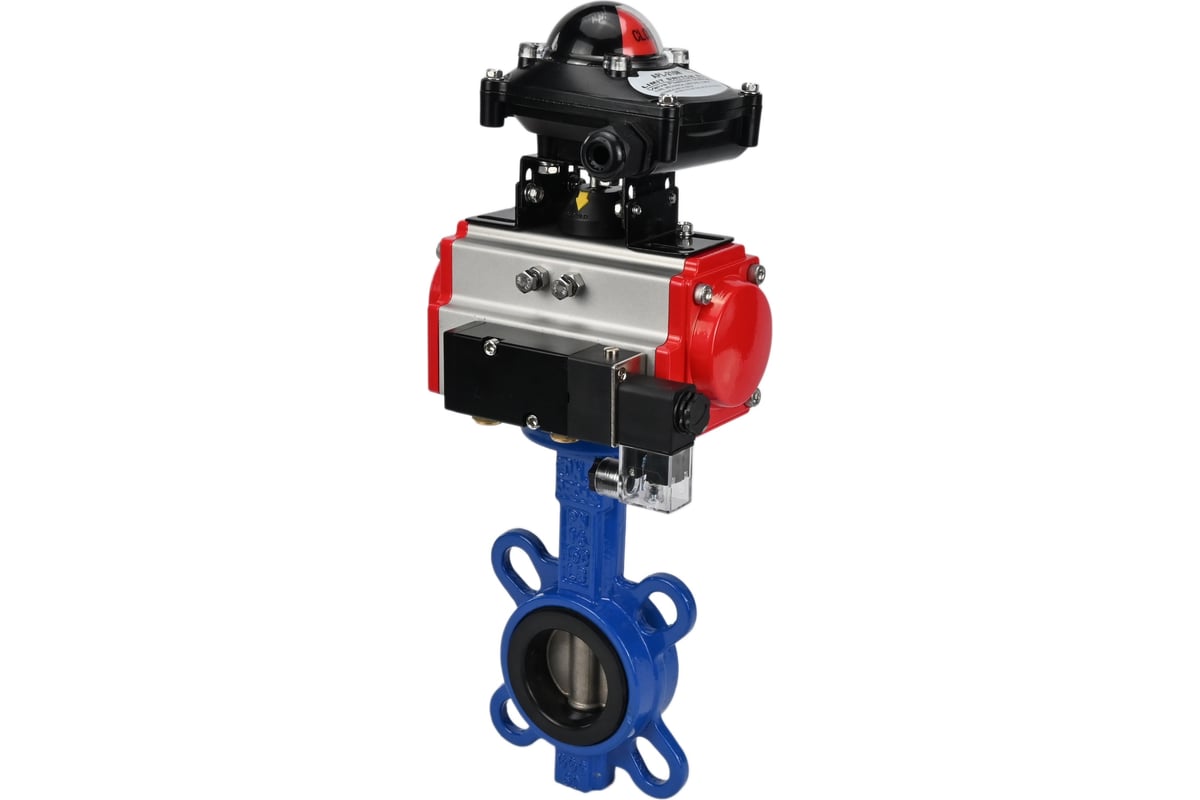 Затвор дисковый поворотный DN.ru GGG50-GGG40-EPDM с пневмоприводом SA-083, пневмораспределителем PND2-S1EM-52-1NC-J08-24VDC, блоком концевых выключателей LSB-210-02NM12-220/24.