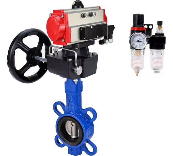 Затвор DN.ru GG25-316L-NBR Ду65 Ру16 с пневмоприводом, пневмораспределителем, БПВ, дублером D050-64732