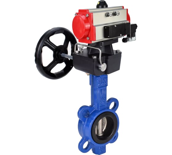 Затвор дисковый поворотный DN.ru GGG50-316L-NBR с пневмоприводом DA-083, пневмораспределителем PND1-S2EM-52-2-T10-220VAC, ручным дублером HDM-2.