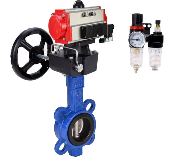 Затвор дисковый поворотный DN.ru GGG50-316L-EPDM с пневмоприводом DA-052, пневмораспределителем PND1-S2EM-52-2-T10-220VAC, БПВ APU1-10-40-V08, ручным дублером HDM-1.