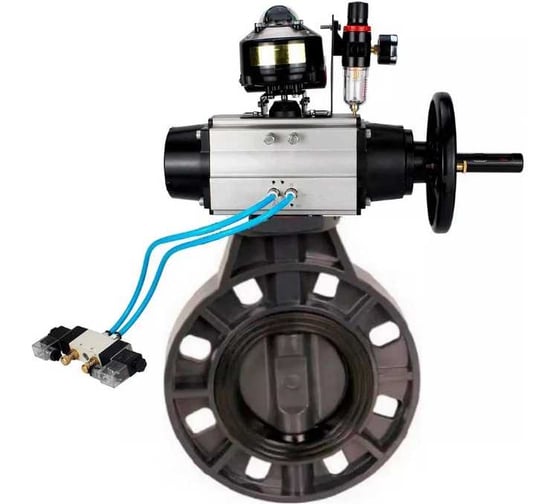Затвор DN.ru НПВХ-НПВХ-E-2W-Fb-ISO Дн150 Ру10 пневмопривод, пневмораспределитель, БКВ, БПВ D050-83020
