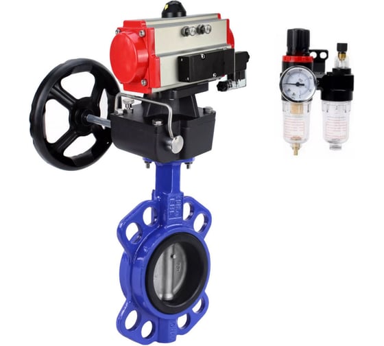 Затвор DN.ru WCB-316L-PTFE Ду100 Ру16 с пневмоприводом, пневмораспределителем, БПВ, дублером D050-64566