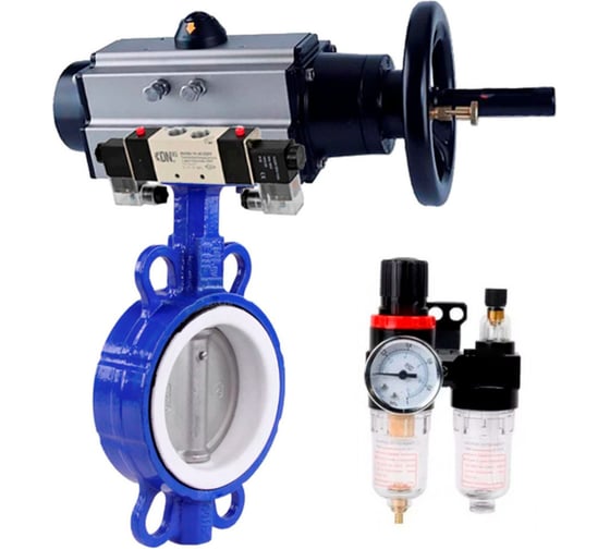 Затвор DN.ru WCB-316L-PTFE Ду125 Ру16 с пневмоприводом, пневмораспределителем, БПВ D050-64633