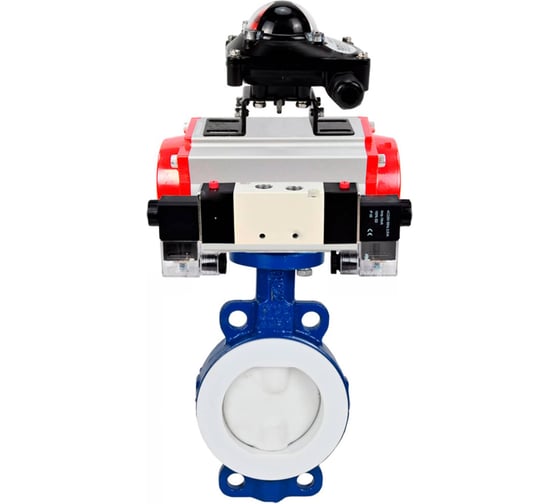 Затвор DN.ru WCB-WCB-PTFE-PTFE-Fb-R Ду150 Ру16 с пневмоприводом, пневмораспределителем, БКВ D050-59528
