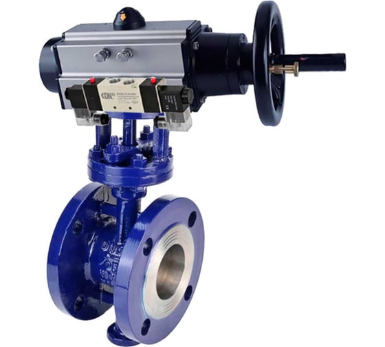 Затвор дисковый поворотный с тройным эксцентриситетом WCB-304-M-F-ISO с пневмоприводом DA-105-1 и пневмораспределителем PND1-S2EM-52-2-T08-220VAC предназначен для использования в качестве запорной или регулирующей арматуры для управления потоками.