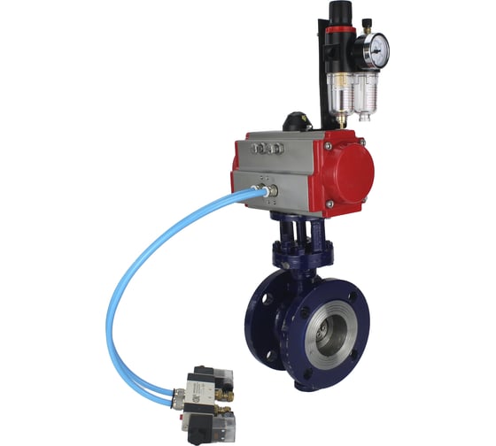Затвор WCB-304-M-F-ISO с пневмоприводом DA-160, пневмораспределителем PND1-S2EM-52-2-T08-220VAC и БПВ APU1-10-40-V08 предназначен для использования в качестве запорной или регулирующей арматуры.