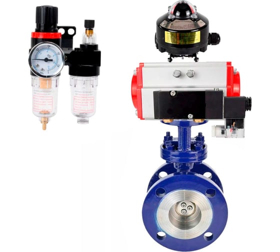 Затвор WCB-316-M-F-ISO с пн.приводом DA-130, пн.распределителем PND2-S1EM-52-1NC-J08-24VDC, БКВ LSB-510-02ExM12-250 и БПВ APU1-10-40-V08.
