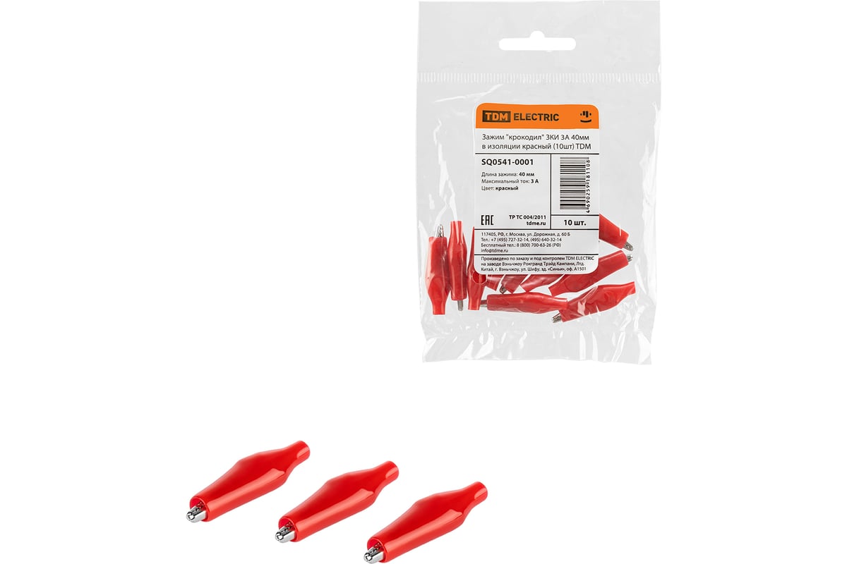 Расходные материалы для зажима крокодил TDM ELECTRIC ЗКИ 3А 40мм в изоляции красный 10 SQ0541-0001