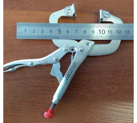 В описании зажима указан "Рабочий ход: 102 мм", на упаковке указано максимальное раскрытие 39 мм, по факту получается от силы 30 мм.