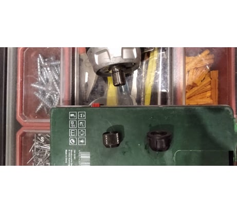 Приобреталась взамен пластиковой гайке, что шла в комплекте. Хорошо удерживает оснастку, благодаря резиновому кольцу, что внутри. Можно регулировать степень зажима.
