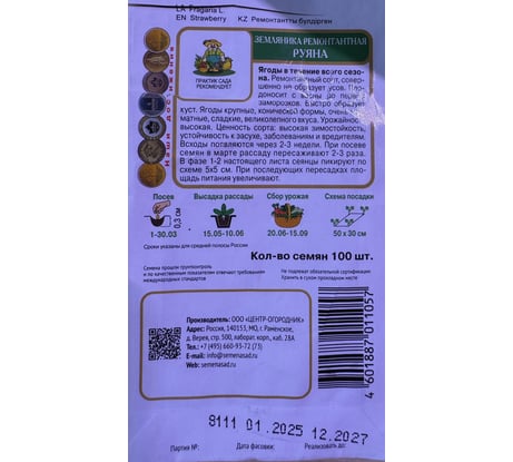 Земляника ремонтантная Агрохолдинг ПОИСК Руяна 100шт 250701