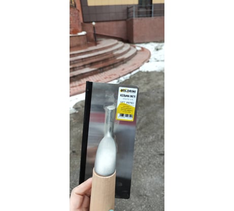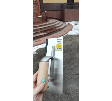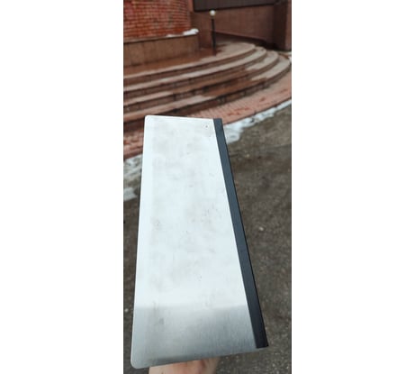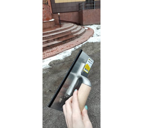 Утерян защитный уголок силиконовый, кельма вся в пыли, на подошве грязь, надеюсь, смоется, на торце заусеница, придётся шлифовать шкуркой
