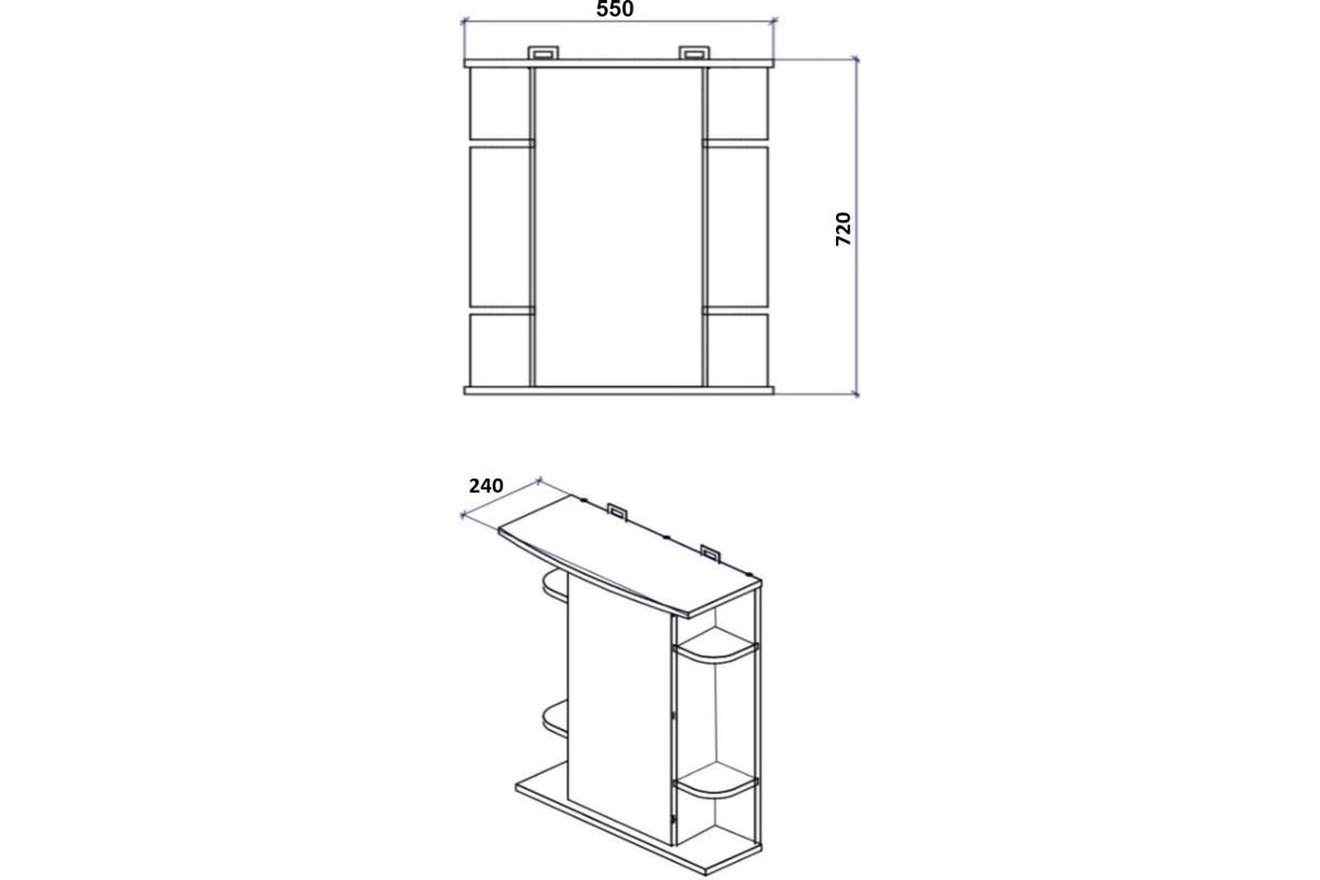 Зеркальный шкаф Orange Кларис 55, правый, белый Kl-55ZSW включает закрытый отсек с полками, куда можно убрать достаточно большое количество косметических принадлежностей и открытые полки - по 3 с каждой стороны от основного отдела, для хранения разных мелочей и аксессуаров.