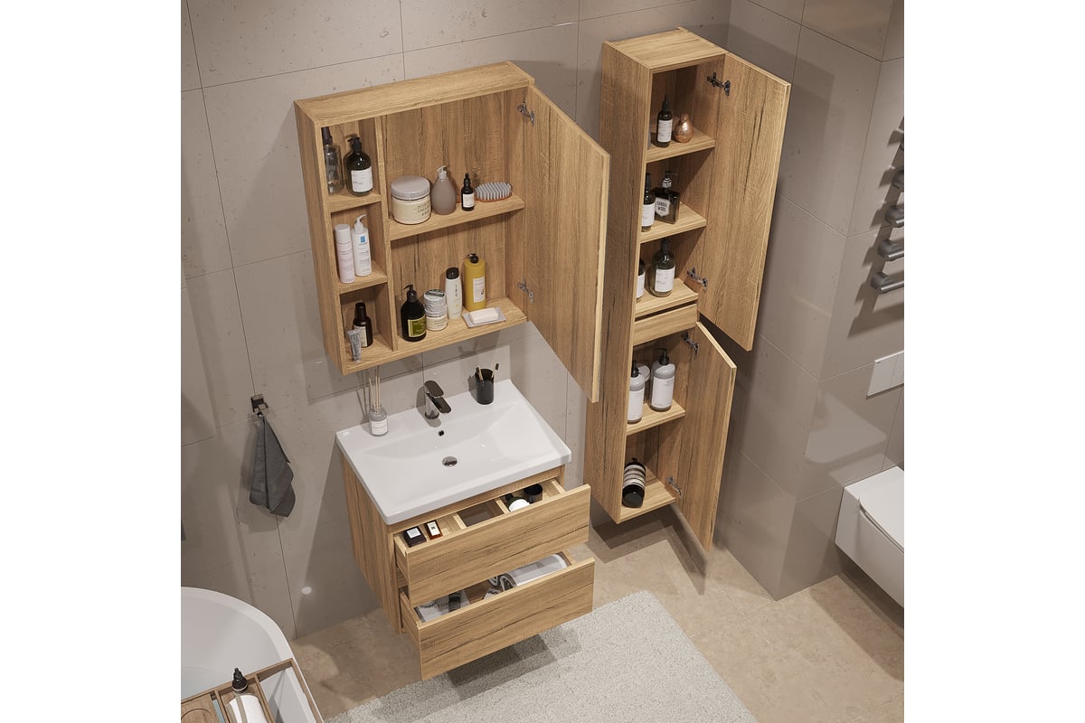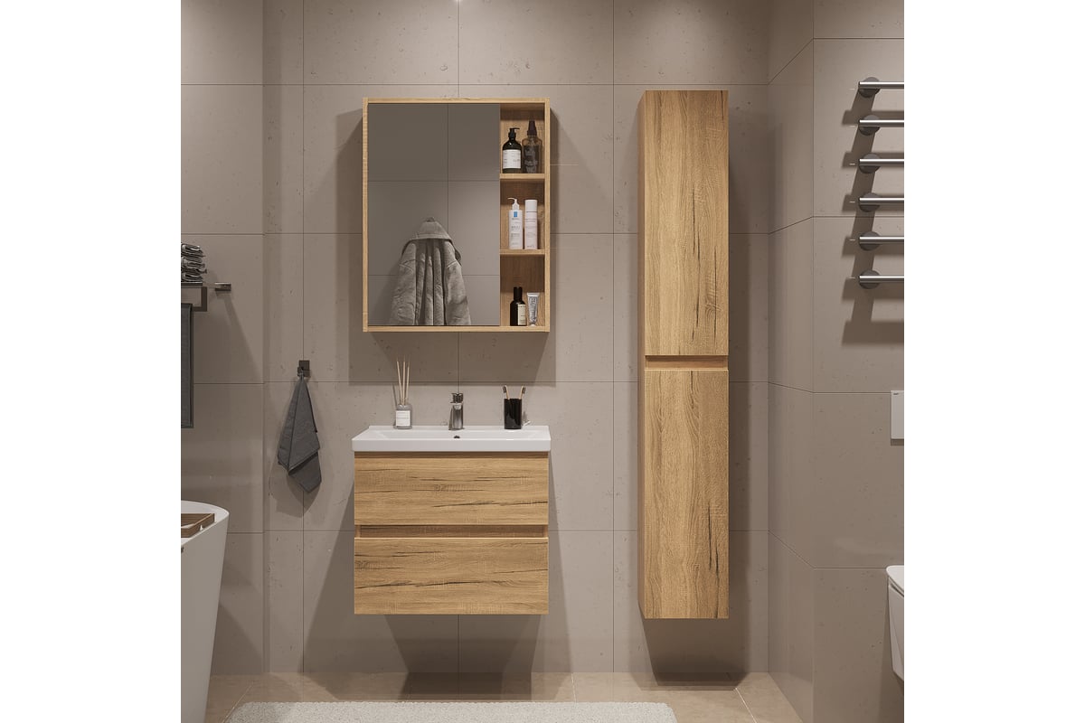 Зеркальный шкаф подвесной Sanstar Lavanti 50 для ванной комнаты Дуб вотан 443.1-2.4.1 443.1-2.4.1.