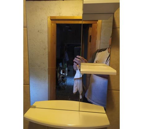 Коробка была вскрыта, быстро осмотрел, ничего не заметил из-за плёнки, после распаковки один зеркальный элемент отклеился и расколол основное зеркало