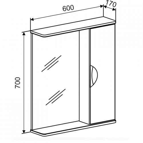 Шкаф оснащен двумя стеклянными полками внутри. Плавное закрывание дверцы обеспечивают петли с доводчиком.