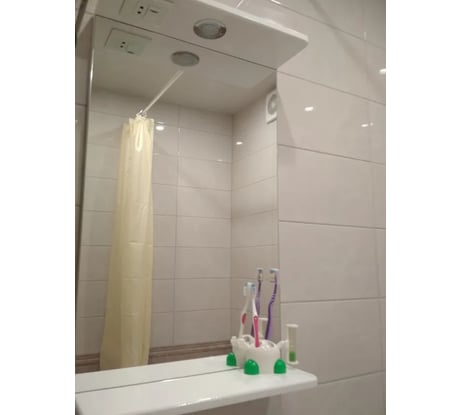 Компактное зеркало с подсветкой, смотрится красиво! Для небольшой ванной комнаты!