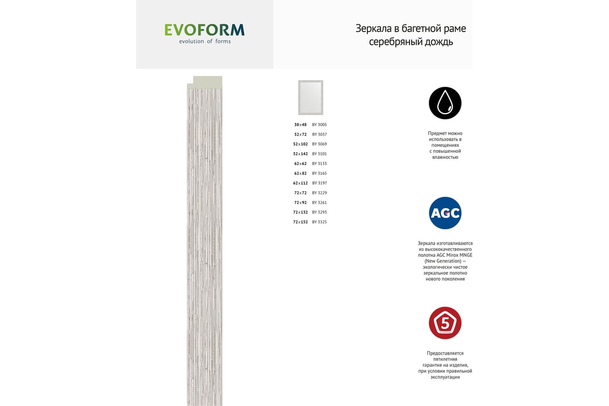 Зеркало EVOFORM в багетной раме - серебряный дождь 46 mm (71x91 cm) 3261 станет изюминкой ванной комнаты и не только, а еще его можно разместить в помещениях с низкими или высокими температурами (подвалы, гаражи, неотапливаемые в зимний период дачи или бани, сауны, беседки).