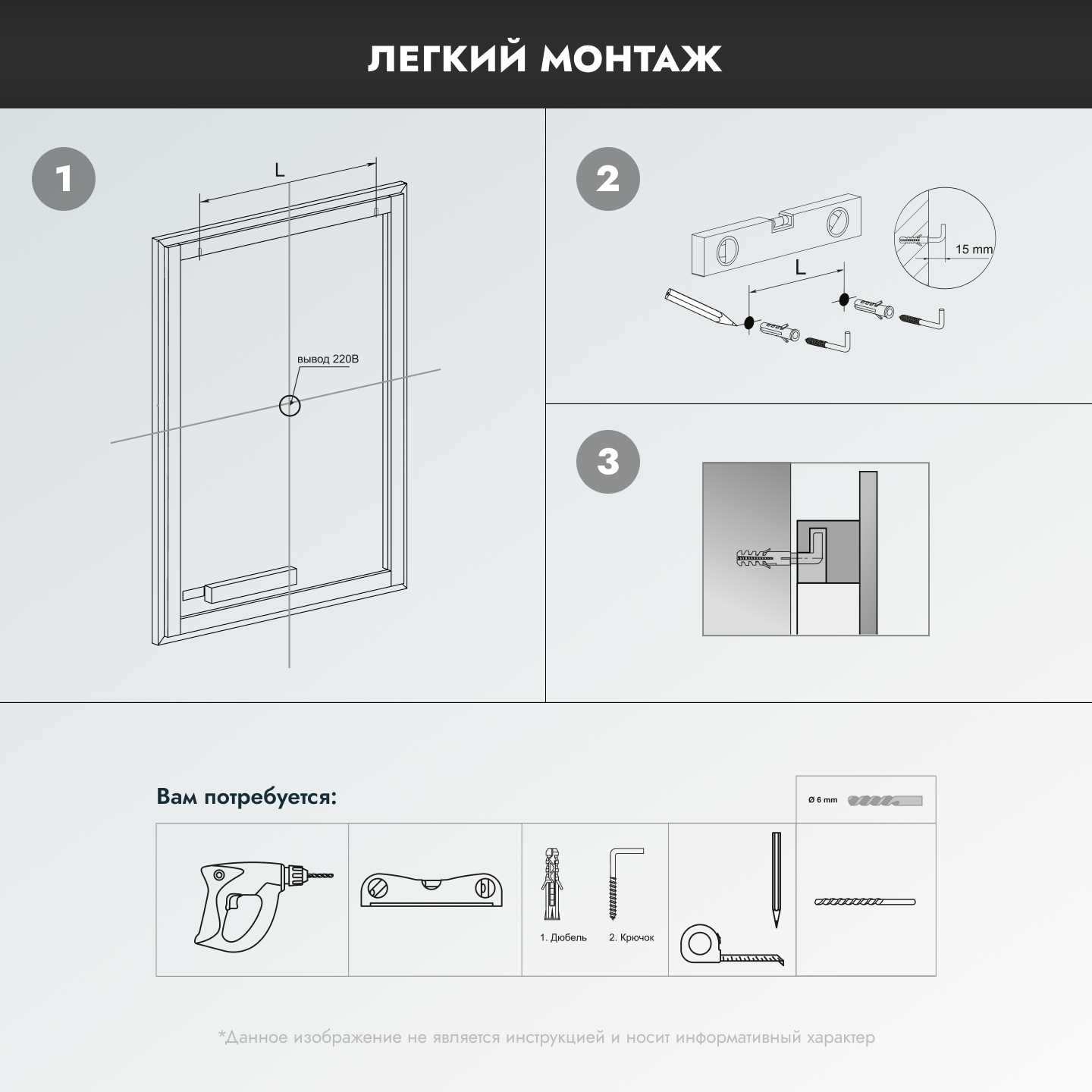 При производстве используются материалы высокого качества - зеркальное полотно AGC Premium, толщиной 4 мм и каркас из профиля LUMINOR.